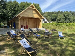 Za wszystkimi stoją dwie osoby i ich pasja – Jadzia i Piotr. W 2013 kupiliśmy pierwszy hektar ziemi i tak się to wszystko zaczęło. Lokalizacja samej winnicy oraz nachylenie stoku pozwoliły nam na wybór bardziej wymagających i szlachetnych odmian. Pierwsze owocujące nasadzenia pochodzą z 2015 roku i są to Gewurztraminer (po który specjalnie udaliśmy się do Alzacji), Riesling, Merlot i Solaris. Kolejnym etapem rozwoju był zakup nowej działki, którą obsadziliśmy w 2020 roku odmianami Souvignier Gris, Cabernet Cortis, Solaris i Johanniter oraz zwiększanie areału o odmiany czerwone: Pinot Noir, Dornfelder i Merlot. Ostatnim krokiem była budowa nowej winiarni z salą degustacyjną.